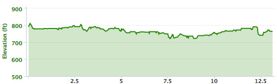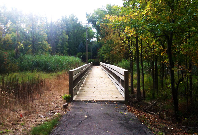 Don Kern, the director of the Grand Rapids Marathon, was there and talked to the crowd before the start of the run. We lucked out with the weather – it was in the low 50s and clear. Since this wasn’t a race, the start was kind of uneventful. The crowd got moving and Matt and I followed. The roads were not closed, but we only spent about a mile in town before we hit trails. There was very little traffic at that hour anyway. The crowd was so big that half of us were on the road and half of us were on the sidewalk. The first mile or two was a little slow, but then people spread out a bit more. Matt is training for the half marathon, so he signed up for the 10-mile run. It was an out and back course, so he was able to go out a little farther before he turned around to get more than 10 miles in. We ran the first 5-6 miles together which helped pass the time.