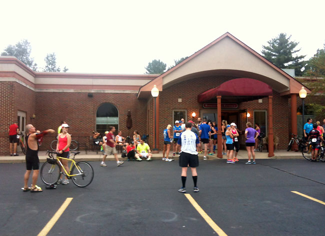 Saturday: Ran 20 miles. When I first saw that Gazelle Sports was putting on a 10 and 20-mile training run, I was definitely interested. For $20, the training run allowed people to run a good chunk of the Grand Rapids Marathon course with aid stations, plus a special technical shirt from Saucony was included. We had plans to go to the west side of the state to visit family anyway. I mentioned it to Matt and he was interested, so we decided to sign up and get a hotel. We actually booked the same hotel that we’ll be staying in for the marathon, so this would be a true test run for the big race day. I’d never done an organized training run before and I was excited. I was especially excited to get a preview of parts of the course.