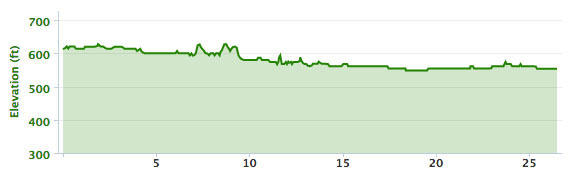 My pace slowed down after that point, and things got a bit more difficult. From about 22-23 miles on, it became a struggle. Aside from the knee pain at the halfway point, I hadn’t had any issues. No other pains, no stomach issues, no cramping. However, I started to get pretty tired and my legs started to break down. The bottom of my feet hurt and my legs got heavier and heavier. I knew an aid station would have some Oreos coming up, so I had that to look forward to. I took a couple of the cookies, but my mouth was pretty dry. I made it through one and a half cookies as I ran before I couldn’t do it anymore. Cookies and a dry mouth were not a good combination. I did have plenty of water in my bottle, but maybe I hadn’t been hydrating quite enough and it was starting to catch up with me. Also, it was probably the fact that I’d gone 23 or 24 miles and I was getting pretty wiped out by then!