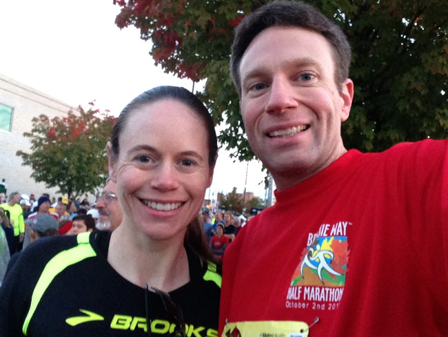 After the expo, we stopped for dinner at Noodles & Company on the way to our hotel. When we got to the hotel, we discovered that our toilet was broken. Matt found a workaround to still make it functional, but we called the front desk to let them know. They gave us the option to switch rooms or stay in our room for only $15. We chose to deal with a little inconvenience and save the money! We spent a while preparing everything for the next morning and got to bed around 9:00. They always say that you may not sleep very well the night before a race, and I blame at least half of that on our neighbors. The people in the next room stayed up much later than us. They had their TV cranked up, spoke loudly, and hacked up a lung out on the balcony. Grrrr.