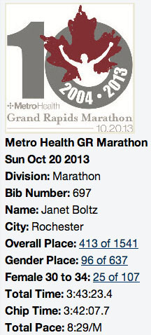 Sunday, October 20th was the day of the Grand Rapids Marathon – my first marathon. I think it was a wise choice to make this race my first because it was an excellent event.
