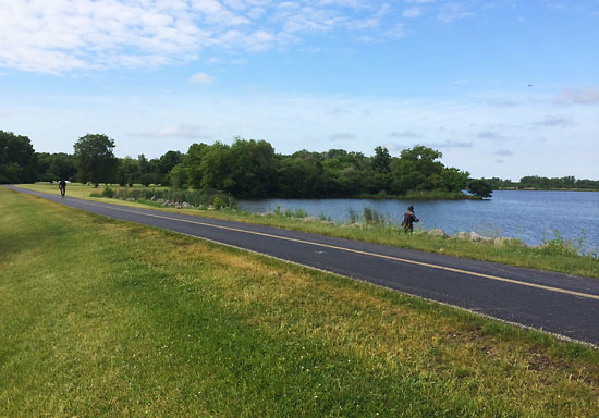 My swim time was 7:39 and I tried to hustle through the transition as I grabbed my helmet, sunglasses, belt with my bib, and put on my socks and shoes. I got through the transition in 1:44 and headed out on the bike. Since I was in the second wave, not many people were out on the course yet, but I always seemed to have someone in front to chase. A number of speedy bikers with fancy bikes and aero helmets came along and zipped right past me. They always make me feel like I’m barely moving. The course is relatively flat with a little bit of rolling.