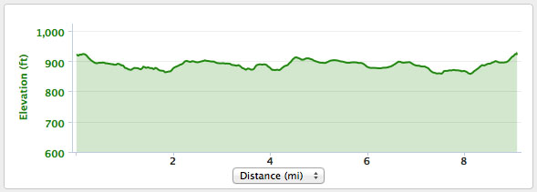 I kept moving pretty good and made it through the second transition in 37 seconds. My legs usually feel heavy as I start the run, but I noticed a slight numbness in my feet for at least half a mile this time – something new for me. I kept a good pace as I ran along the paved trail, but my breathing was pretty bad. The first half of the run was a bit of a struggle and when I felt like I should have run a mile, it was frustrating to realize I’d only run half a mile. I knew it was a bit of a climb at the beginning, and when I look at the elevation map, now I realize why the first half felt so tough…especially right off the bike.