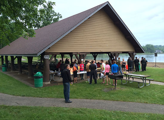 The ridiculously early Saturday morning started around 4:45, and I was on the road by 5:20. Linden is a little less than an hour away and the transition area opened at 6:00. I wanted to get there early to check in and get a good spot in the transition area. I remembered that it was pretty full by the time I got there last year and I had to squeeze my bike into a spot. I was able to check in quickly near the beach, then I went back to the car to get my bike and other stuff. One thing I really like about this race is that parking is available right across the street from the transition area, making it easy to go back for my bike after checking in.