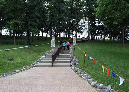 The run up the stairs to the transition area is included in the swim time, and it’s a lot of stairs to run when you feel wobbly coming out of the water!