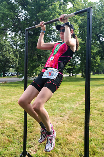 I found out that I placed third in my age group, so we had some time to kill before the awards ceremony. The Navy was there with a pull-up bar so I went over to do a few.