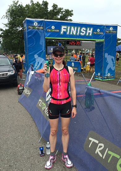 Overall, this was a great experience and I’m really happy with how things went. Like every other race I’ve done, the run has been my strength while the bike has been my weakness. I have to keep working on my cycling despite really just wanting to run. Though I’m always a little critical of myself, I’m also thrilled. After more than six weeks off due to injury, I slowly restarted my training from scratch in mid-April. I wasn’t sure that I’d be able to participate in triathlons at all this summer. After a race like this, I think I’ve been able to shake my uncertainty. The triathlon season is short, so I’ll continue to train hard and hopefully do another race or two within the next month or so.