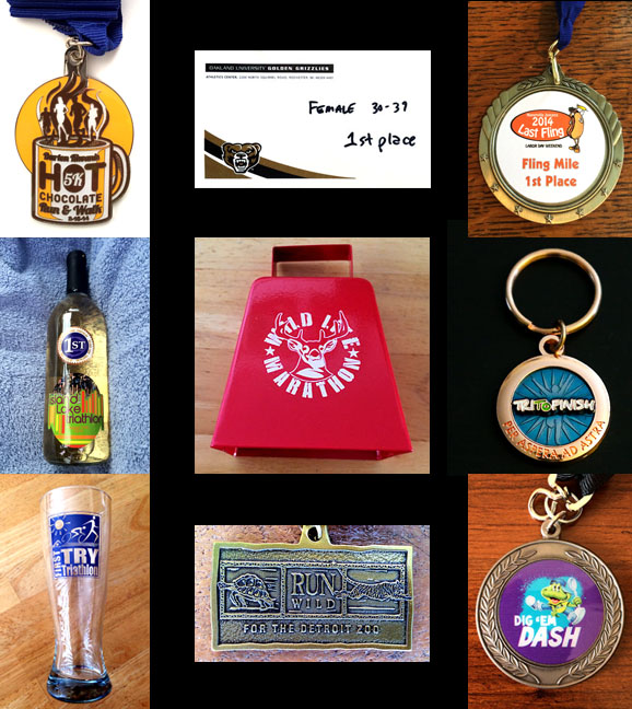 Another fun thing I realized about this year is that I actually received an age group award (anywhere from first to third) for each race I participated in! I don’t put a lot of stock in age group awards because it all depends on how big a race is and who shows up. It’s still kind of fun though and I gathered a cool collection of awards.
