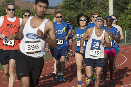 The Corporate Cup Relays started back in 1987 and take place at Southfield Lathrup High School in Lathrup Village, MI. This year’s event occurred on Saturday, June 20. The event includes 5K and 10K road races, a 5K walk, field events (like long jump, high jump and shot put), and track relays. Teams are divided into three divisions based on the size of the company. Division I includes companies with 10,000 employees or more (GM, Ford, and FCA – formerly known as Chrysler), Division II ranges from 1,000-10,000 people (Autoliv, Valassis, Shinola, and ThyssenKrupp), and Division III has less than 1,000 people (AVL, Nissan, Takata). Teams also raise money for charities, which included the Dearborn Animal Shelter and the Special Olympics.
