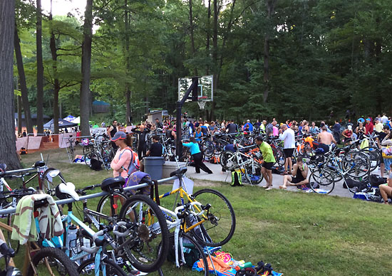 Packet pickup took place at the Thumb Brewery, where we also ate a nice dinner. My bib was good for free chips and dip – bonus! After dinner, we walked to the Caseville County Park to check out the site of the race. A band shell near the park was going to host a concert that evening, which ties into the official title of the race – Caseville Movin’ and Groovin’ Triathlon.