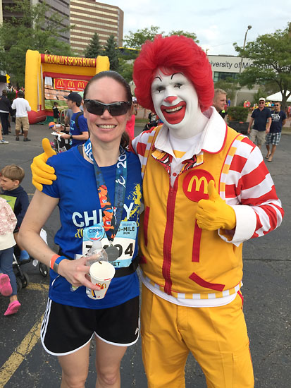 The official post-race area had even more. We got some Timbits from Tim Hortons and some orange drink from McDonald’s. I also stopped for a picture with Ronald McDonald.
