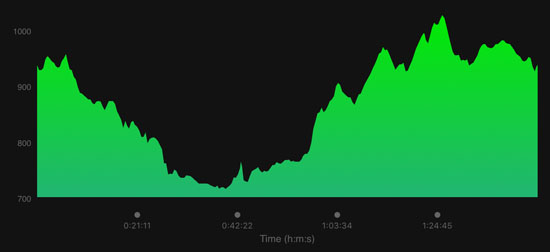 Pretty early into the race I knew that I’d roll along without any big expectations. I hoped that I’d run faster than I had at the Brooksie Way half a few weeks earlier, but that was the only real goal. I didn’t feel especially fresh or fast, aside from a part around the ninth or tenth mile when there was enough of a downhill stretch to help speed me up. The rain didn’t bother me all that much, and it came and went a few times. During the few brief moments when it wasn’t raining, I noticed that my face was pretty warm. The temperature dropped throughout the day, and it’s probably for the best that it was a little warm. I’d rather not be cold in the rain and wind!