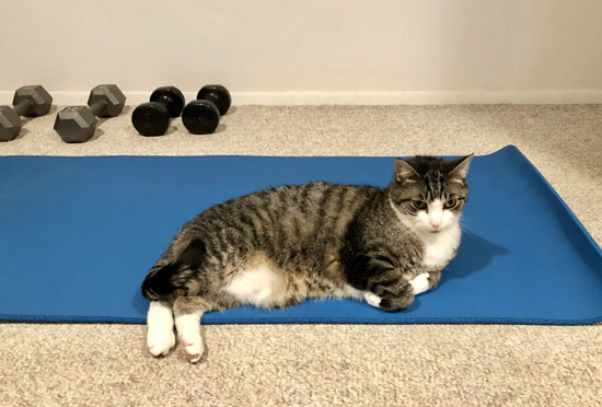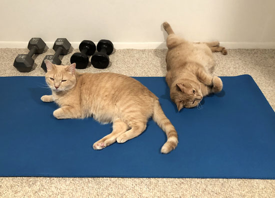 I always had company from my best little buddy Romeo when I did strength workouts but lost him just weeks before the COVID lockdown hit. I miss him terribly and really struggled with the thought of having new buddies after him. At the end of September I came across a couple of sweet brothers who were in need of a home and I knew I could help them live their best lives. It turns out most animals like to hang out during workout time, so now Rusty and Butters join me sometimes just like Romeo did.