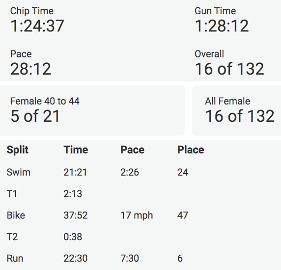 While I was on the beach I chatted with a nice woman about our races before heading home. I found the results on my phone and was probably more excited about my 16th place overall finish than being fifth in my age group!