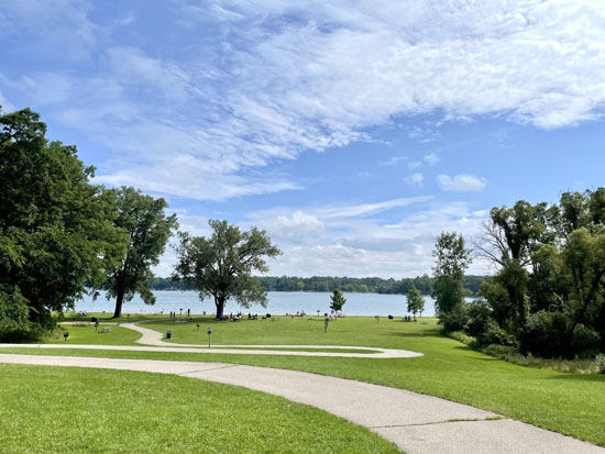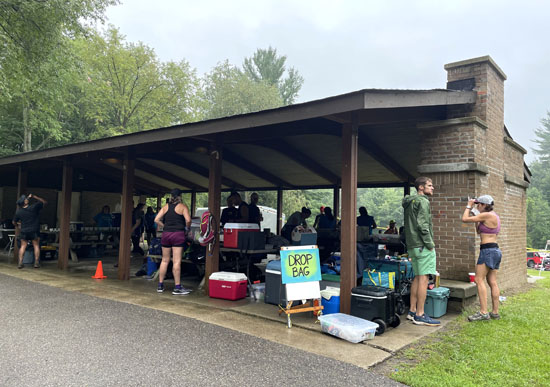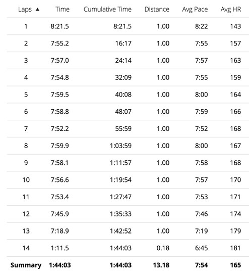 It rained pretty heavily before I left home but remained dry during my run aside from a moment of drizzle in the early miles. Rain probably would have felt better than what we got. It was in the 70s and very humid at the start. My friend Lisa was there with her husband and we talked in the parking lot for a few minutes before I went over to the pavilion. I stashed my insulated bag with several 21-oz. bottles under a picnic table in case it rained again.