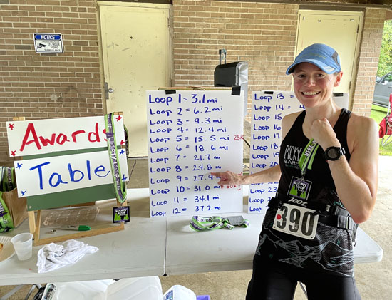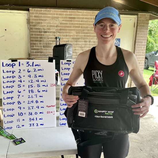 The first time I ran the Loopty Loop Trail Run was in 2019. It was my introduction to the ultrarunning environment and I loved it. I ran the 4-hour race that year, which I did again this year, and the event also offered 8-hour and 12-hour runs. It was really inspiring to know that some people covered more than 50 miles. I was training for the Chicago Marathon at that point and had a 16-mile long run on my schedule. I ended up running 19.9 miles that day. My time hadn’t run out yet so I was tempted to run another loop. I thought that would be pressing my luck so I stopped. I found out I could have won the race if I had completed that final loop. I feel like I made the right decision that day but I also told myself I should return to the race the next year and go for the win. I had to wait a couple years to get back to it but my mission remained the same!