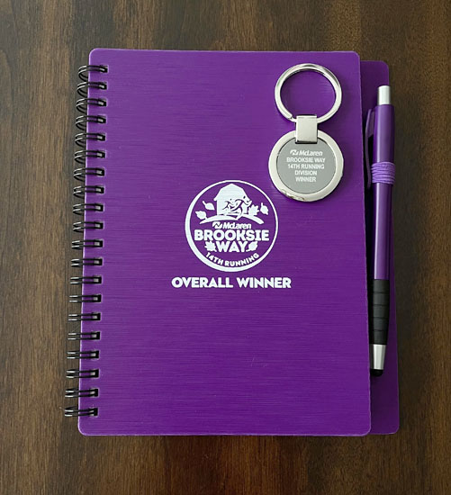 The following weekend a couple of Brooksie volunteers were back on the Meadow Brook grounds to hand out age group awards. I swung by and received a notebook and key chain. They also had boxes of old shirts for free so I grabbed a bonus one for this year’s race – as if I really need more shirts!