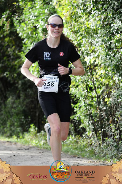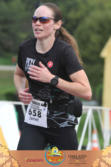 After the fast downhill miles on the pavement we hit Clinton River Trail for a little over a mile and the asphalt and crushed stone surfaces didn’t seem to slow me down. I knew that once we turned off the trail things would get harder with the first incline. There’s a quick downhill afterward that takes us through downtown Rochester. I saw Jeff again at that point and told him that the easy part was over. A guy running near me jokingly said, “That’s not very encouraging!” I laughed and said, “Well, it’s true!” I think I’ve crossed paths with him while out running so I’m pretty sure he knew it too.
