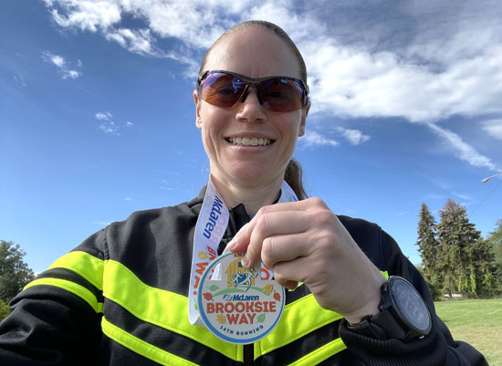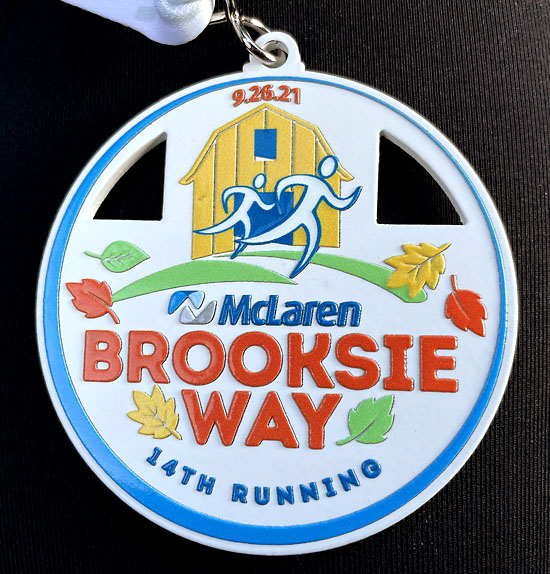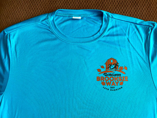 Sunday, September 26th was the day of one of my favorite local races, the Brooksie Way half marathon in Rochester, MI. I live just off the course and know it well since I run its roads and trails on a regular basis. In addition to that, it was my sixth time running the actual race. A few things were different this time around because of the pandemic. Rather than having the expo inside Oakland University’s rec center with a bunch of vendors, this time packets could be picked up outside on the grounds of the Meadow Brook Amphitheatre. I made the quick stop on my way home from work on Friday afternoon.