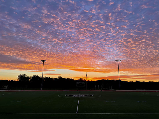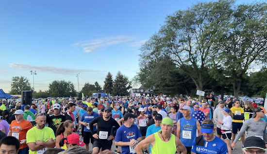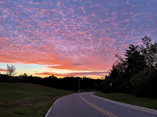 Around 7am I had my second Picky Bar of the morning which is my go-to pre-race food that works for my stomach. Then I headed out for a warm up jog on Oakland University’s campus. When I ran the race in 2019 I did a “warm up” run of seven miles so I could complete a 20-mile marathon training run for the day. This time I was determined to truly give my best effort and RACE. The mile and a half that I ran beforehand was just to loosen my legs. Plus, I know that there is a porta potty out on the 10K course that will have no line versus the ones back on the main grounds. It was also a good excuse for me to check out the incredible sunrise.