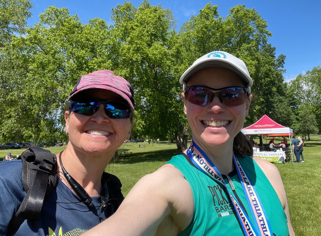 I always figure it’s best if people don’t spectate my races because there is so much downtime. Since Lisa is a runner she was smart and used the downtime to get eight miles in. It made me feel better that she was able to enjoy the park too and use that extra time efficiently. It was so nice to have her there and we had a chance to hang out for a bit after the race as I sampled nearly all of the treats that were available. In addition to the great race photos, I can always count on Epic Races for the best post-race food. Pancakes, egg and cheese wraps, mac & cheese, cookies, ice cream sandwiches, etc. I get SO excited about good food after a race and they do it right. I kind of cringed at the price when I signed up for the race but triathlons involve a lot more than typical running races and the food and free photos certainly made it worthwhile.