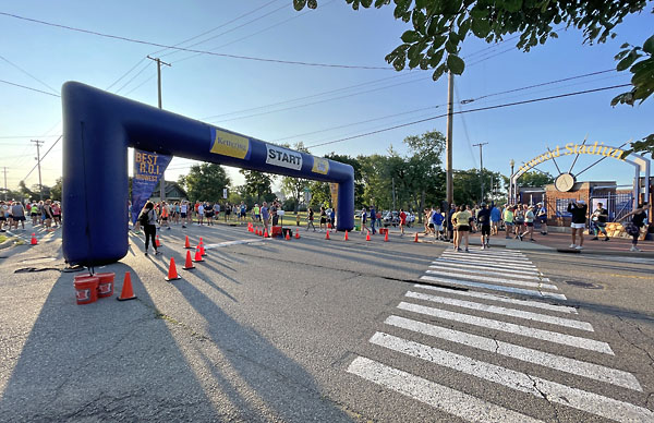 As race time got closer I ran from the parking lot to the roads around the stadium for half a mile to get my legs moving. As I waited for the start, I lingered close to the starting line but left plenty of room in front of me, assuming faster people should come fill that gap. There weren’t many people who were anxious to start at the front and I figured they’d just have to pass me!
