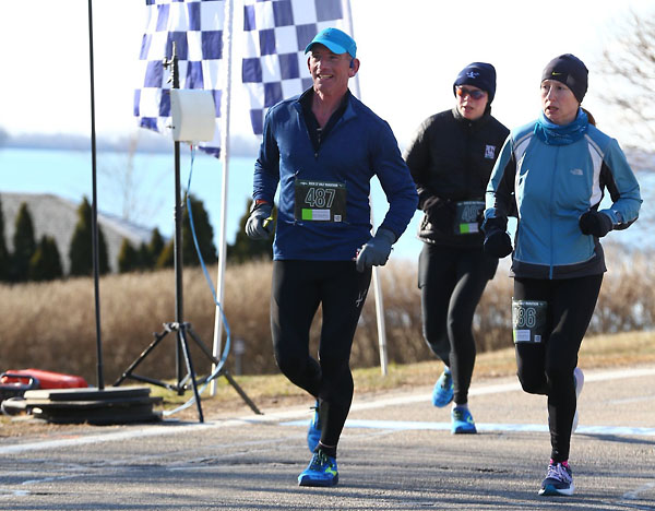The smooth surface of the road didn’t last all the way around the island, unfortunately. There were a few rough patches but still nothing as bad as the east side had in the past. Despite the cold, it was a pretty, sunny day. I couldn’t wait until the wind would be at my back though. The wind was noticeable enough heading toward the west and on the west side of the island to make my already challenging effort feel more difficult. I tried to look forward to running around the airport which I knew would come somewhere around ten miles into the race.