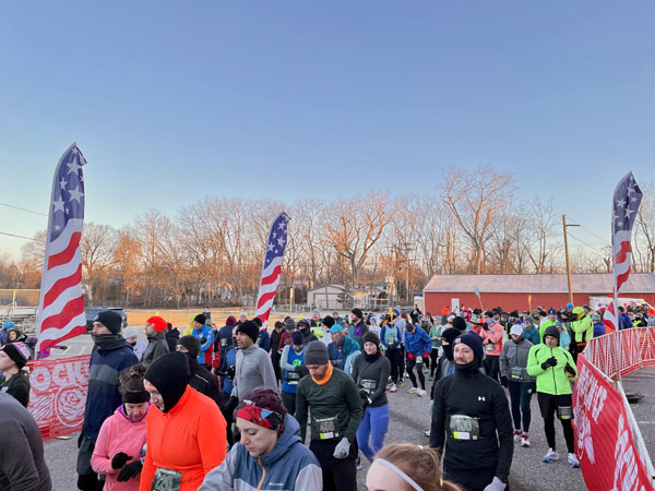 I had been worried about how cold it might be with the wind so I had plenty of layers on. I’m glad I ran a couple miles because that was enough to warm up and realize that I had overdressed. I had a buff over half of my face which was nice to start, but the wind wasn’t that bad and I didn’t really need it. I had a light layer of tights covered by pants and decided that I could swap to a single pair of tights. I also got rid of one extra shirt. Feeling ready to go, I started to run again since it was over a quarter mile between the high school parking lot and the start by the middle school. I continued to run out on the main road both to stay warm and to add more distance. I ended up with a total of 2.9 warm up miles so I would get at least 16 miles in for the day by the time the race was done.