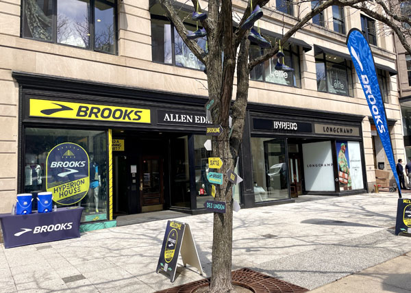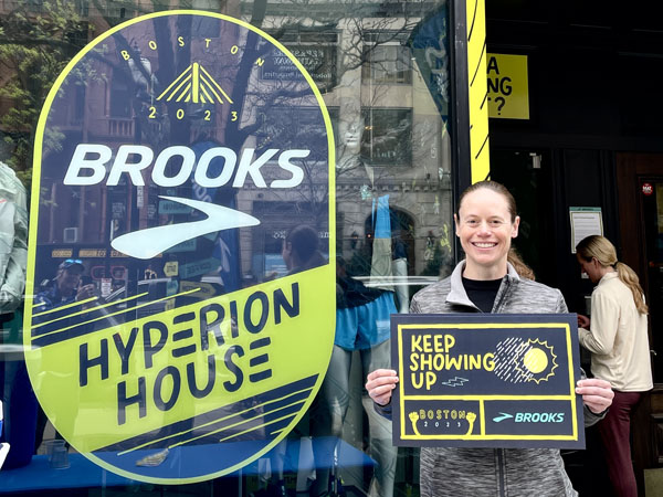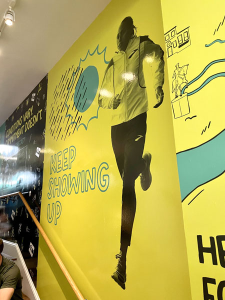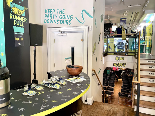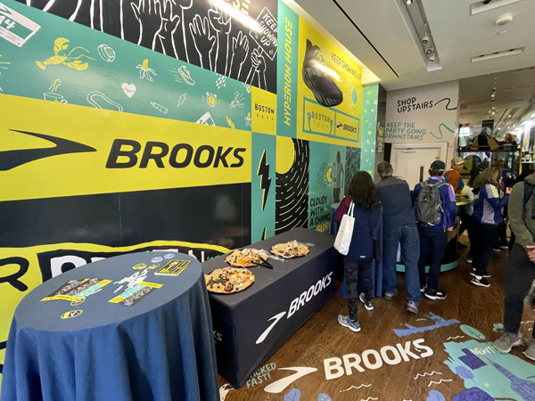 Brooks is my go-to brand for running shoes and other gear. Their slogan is to “run happy” and they truly embody it. They put so much care into their shop with so many fun little details. They had snacks and a bunch of cool freebies like posters, stickers, pins, and even special Des and Hyperion House cookies!