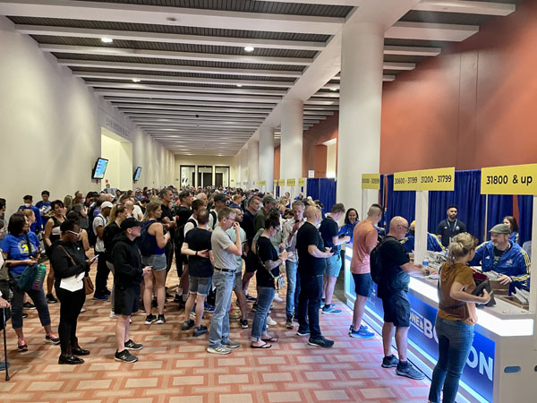 I went to the expo shortly after it opened and it began with a slow crawl through a series of many lines in the convention center. Fortunately the line for my race bib was short. I couldn’t help but be wowed when I saw that they had packets for over 31,800 people.