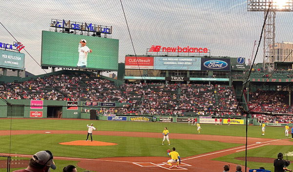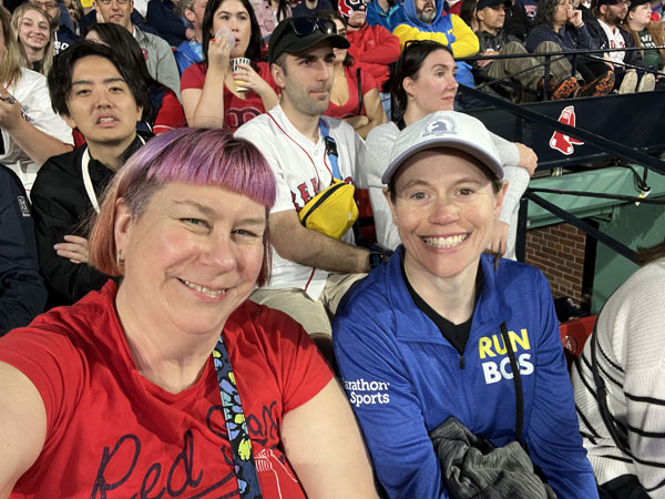 It’s been a fun tradition to catch a game at Fenway Park each time I’ve been in town for the marathon. I enjoyed the game with my Boston-area friend Kristine and her son Jake last year and was thrilled that we were able to meet up again this year. As a bonus surprise, I got to see Meb a second time – throwing the first pitch!