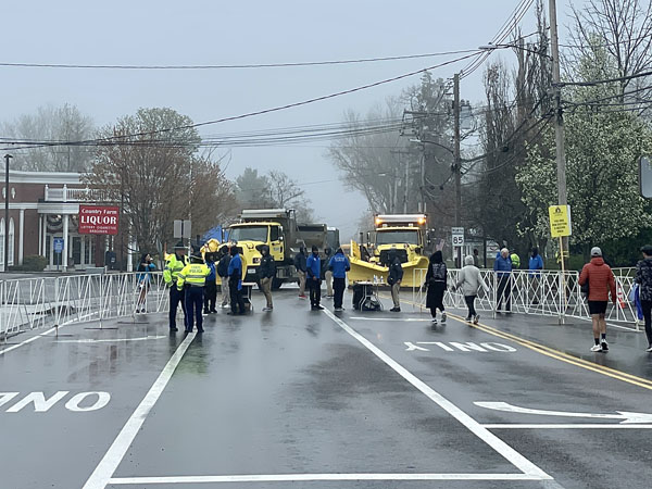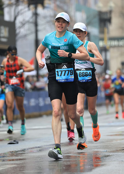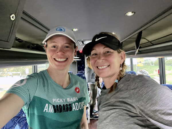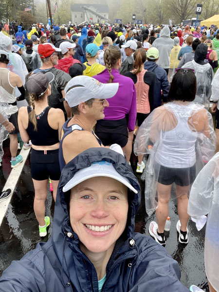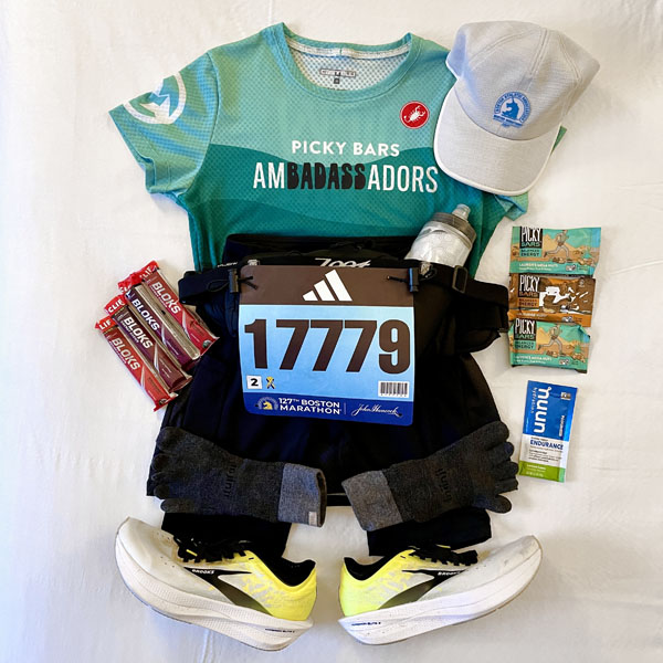 It’s easy to stay distracted while having fun running around to panels, the expo, and other various events on Friday and Saturday. On Sunday, things suddenly became a bit more real and the worries seeped in. Am I feeling that tweaky spot inside of my knee enough to be concerned? Which shoes should I wear in the rain? Do my “super shoes” have less traction and should I worry about sliding in them? 50s are great for racing, but could I get too cold in the rain if there’s some wind? Should I wear a light rain jacket? Should I wear gloves? Fortunately I have some great friends who are runners who could help talk some sense into me. Plus, Kevin Hanson reminded me that when it had been rainy for the miserable 2018 race that had so much carnage, it had also been much colder and windier. I told myself not to overdress and to skip the jacket. My super shoes should be fine. It would all be fine! I organized my gear for the race and determined that it was done, no more debating. That helped ease some nerves.