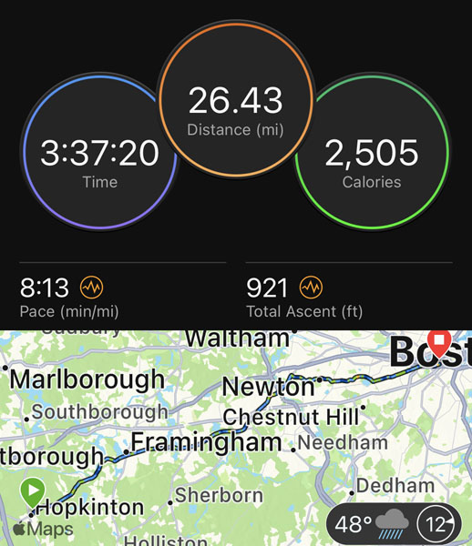 Marathon Monday had arrived and I got up around 5am. It would be a long morning leading up to my start time at 10:50.