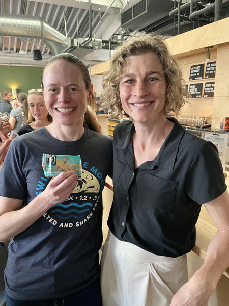 The T was very crowded and it took a bit for me to figure out how to go where I wanted to go, but eventually I made it to Lamplighter Brewing Co. – CX in Cambridge for a special Oiselle event. Oiselle is a running brand by and for women athletes that really concentrates on creating a supportive environment for women. It was another event that featured Kara Goucher, plus Lauren Fleshman was also there – another successful runner who helped create Picky Bars. I swear by the bars and am a Picky “AmBADASSador” so I jumped at the chance to see Lauren too. I shared info about the event with Steve and was glad that he made it and we got to hang out again.