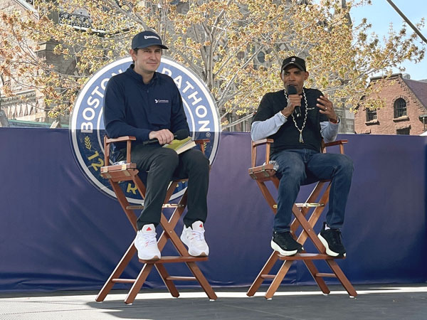 Five of the six athletes would be racing Boston for the first time. We got to hear about how they had spent several days training on the course and what their expectations and concerns were. It was a great discussion and a nice chance to catch up with Kevin as well.