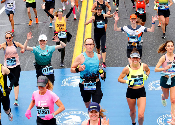 The “scream tunnel” at Wellesley College is always a huge highlight of the race. The women are SO enthusiastic that I can’t help but pick up my pace. They’re located around the halfway point of the race and are such a welcome boost of energy.