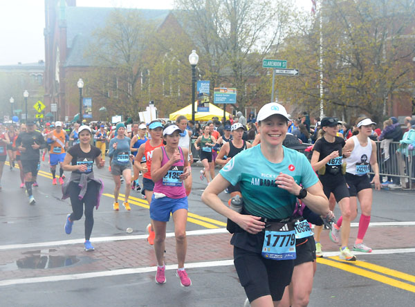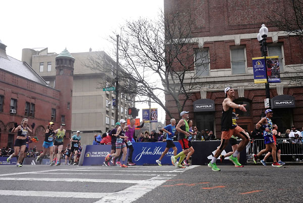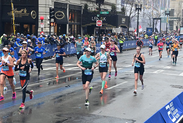 I reached the underpass where we go downhill, but of course have to climb back uphill after that. Although people like to say that the race is all downhill after the Newton Hills, there are a few little sneaky ones to battle. I reached the famous “right on Hereford, left on Boylston” point of the race just before the end and realized why some people refer to it as “Mount Hereford.” It’s not a significant climb but you definitely feel it when it comes that late in the race.