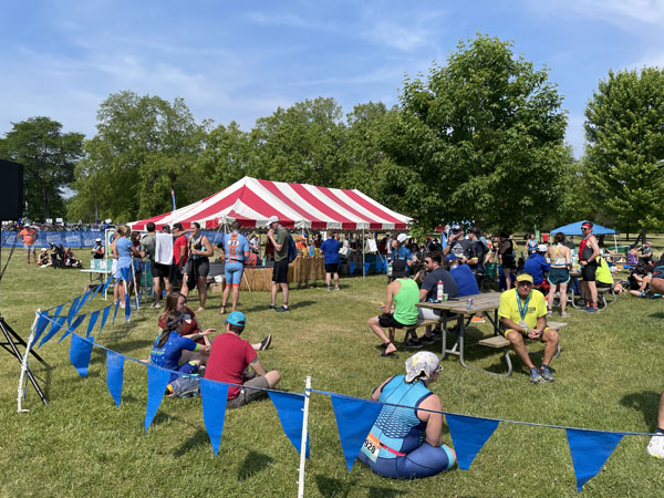 After I collected my bib, shirt, and a pair of sunglasses, I hung out in the shelter to wait for the start.