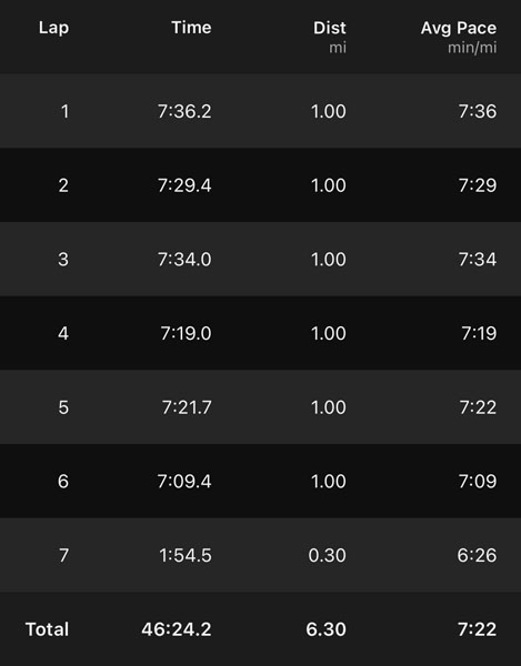 I had run over 16 miles by the time I got into my sixth loop so it was no surprise that I started to wear down. The humidity had me feeling a little gross but I don’t think it affected my running too much. I was smart about staying hydrated. My legs just got tired and started to feel stiff. I had reached the point where I was pushing beyond what I had properly trained for. Every little climb started to feel major and popsicle hill felt harder every time. The downhill stretch at the beginning had been kind of fun on fresh legs, but it pounded my knees and didn’t feel so great after several rounds.