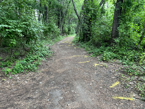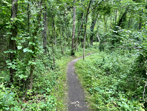 I had never run that trail before and discovered a pretty adventurous downhill stretch. It was easy to build momentum for a quick start to the race. I watched the feet of the guy in front of me to see where he landed. It was a single track trail with an uneven surface and plenty of roots and rocks to avoid. After we got through that extreme drop, the course leveled out into mostly single track trails that were a bit more tame. I had run through the park a couple days before the race and took pictures while I was there.