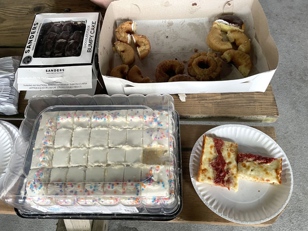 I sat in a chair and drank some water as I took some time to recover. Eventually I pulled myself up so I could start to enjoy the variety of treats. I’m always up for pizza and cake, ESPECIALLY Bumpy Cake which is one of my favorite treats.