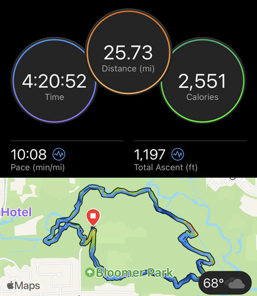 The 8-hour race had 17 women and 23 men. The top male completed 15 loops for 43.4 miles and the top woman completed 13 loops for 40.3 miles. Those people inspire me to do more!