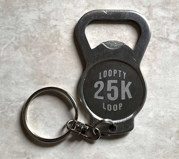 People were really kind about stepping off to the side to make room for others who were going faster. It never got congested and there was only a stretch or two where it was just too narrow to pass immediately. I ran fairly comfortably for the first five loops, ranging between 29:45 and 31:44 per loop. I knew that the fifth loop earned me a 25K key chain!
