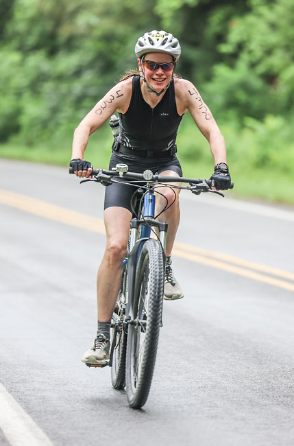 As I walked up to the registration table to collect my packet, of course I caught a little light-hearted grief for my bike. That already happens sometimes with my other bike so I wasn’t surprised to get hassled about my mountain bike. Most athletes are concerned with being as light and “aero” as possible and have really thin tires and fancier bikes. On the other hand, I am pretty insecure on the bike and more concerned with comfort. I still haven’t turned into a very serious cyclist and I just do what works for me. I explained that I would just get a really good workout with my mountain bike!