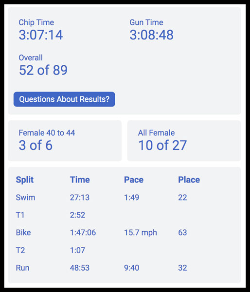I keep trying to remind myself not to worry so much because yet again, everything worked out just fine. I may not have especially enjoyed the bike segment, but do I ever? It’s not that I dislike biking but I’d rather spend more of my time swimming and running. That always becomes painfully obvious on race days! Still, I felt accomplished for pushing through this challenging race and was glad to get out there for another race this season. I still have Swim to the Moon to look forward to in August. IF I don’t add another race to my schedule, I may wrap up this triathlon season with the truly “Epic” 10-part Battle of Waterloo on July 30th. That will be the true culmination of all of the crazy training I’ve done the last few months!