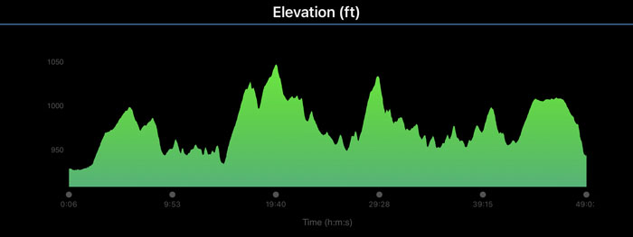 We started by climbing a hill on the way out of the park then spent the rest of the time on the road with some rolling hills. Thankfully vehicle traffic was pretty light and I didn’t have any real concerns about that.