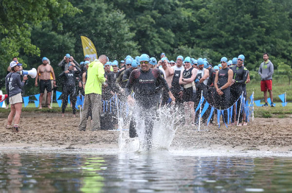 After I left the transition area I got into the water for a very quick warm up. Wetsuits are legal up to 78° and the water temperature was just under that. The buoyancy of the wetsuit helps enough that I was thankful I could use it.