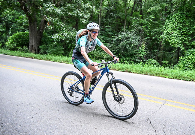 I knew that photographer Greg Sadler would be somewhere near a bridge that we would go under and I was on the lookout for him. The pace slows down and it gets a little congested at that spot so I had no problem taking a moment to pose for the camera!