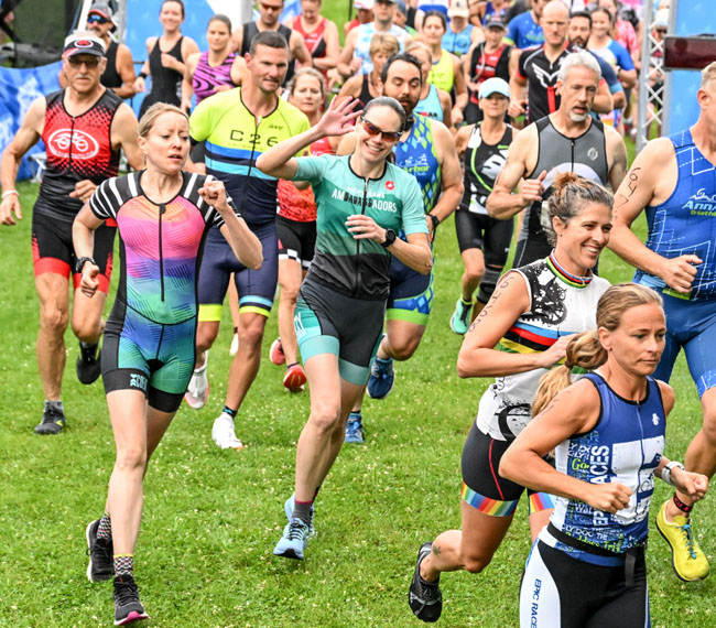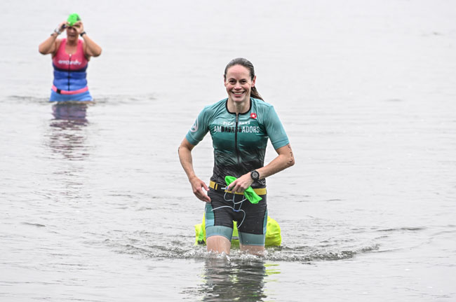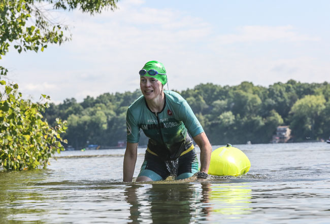 While the water had been around 78° in the weeks leading up to this race, I think the announcer said that it was 71° that morning. The majority of people, myself included, didn’t use a wetsuit. This race follows USA Swimming competition rules which typically calls for swimsuits. There are separate wetsuit divisions offered though and I started to question if that would have been a good idea! I never truly warmed up but I was fine.