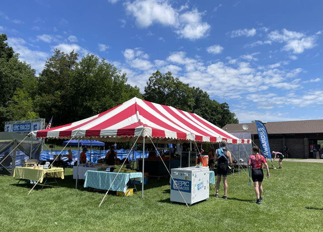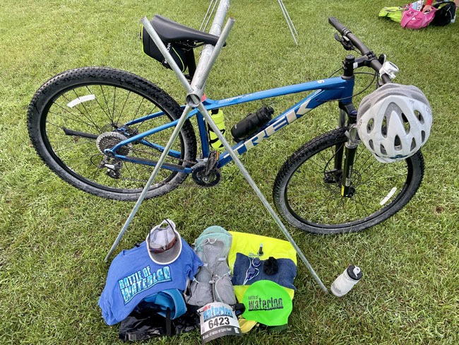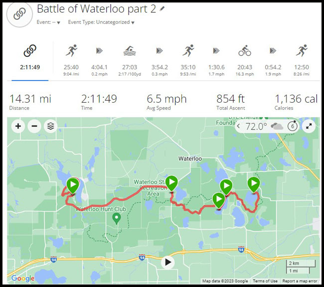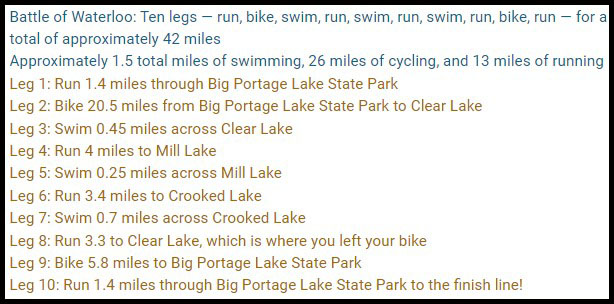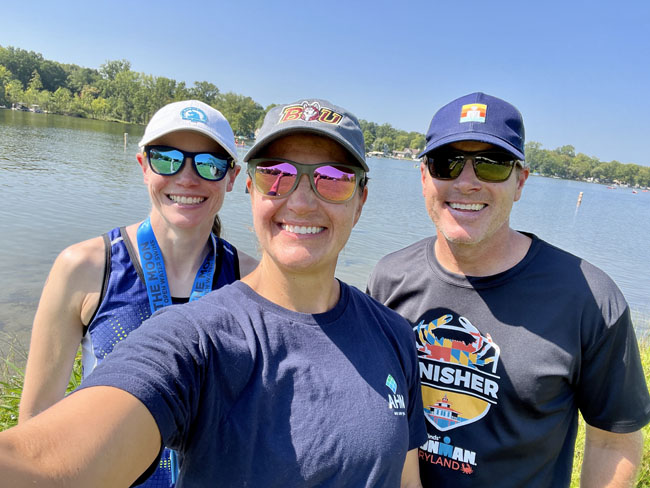 I got to Halfmoon Lake at the Pinckney Recreation Area at 6:00 on race day so I would have time to pick up my packet and catch Heather and John before they started at 6:30. I found them just as their race meeting started and wished them luck as they got ready to go!